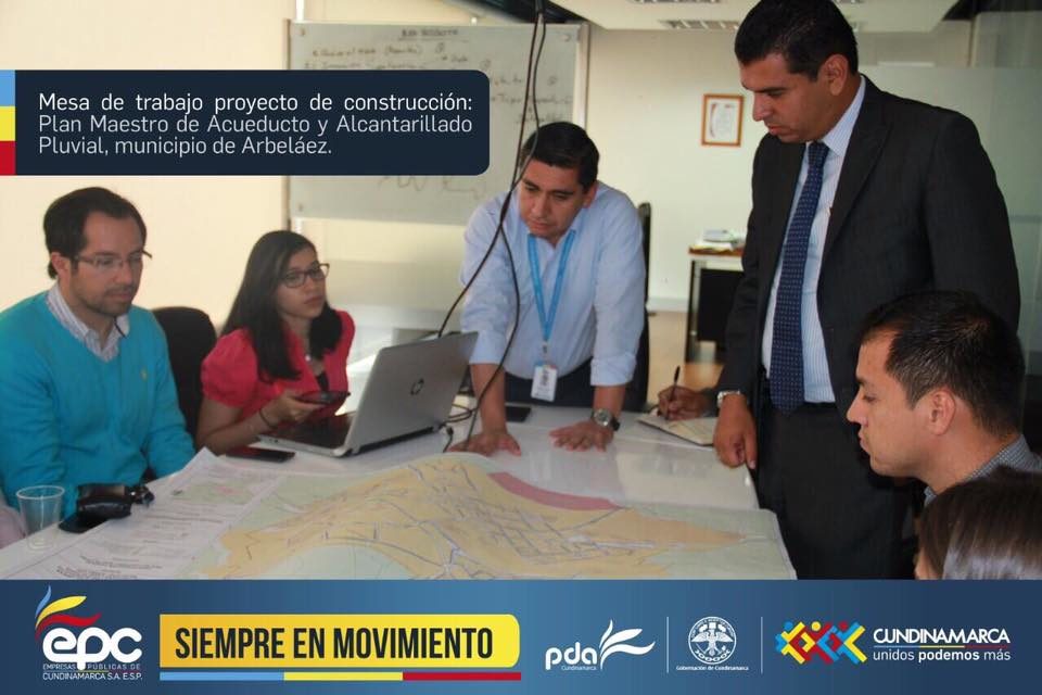 En las horas de la mañana, en las instalaciones de Empresas Públicas de Cundinamarca S.A ESP (#EPC), se reunieron: Andrés Díaz gerente general de EPC, Jorge Godoy, Alcalde del municipio de Arbeláez, Ing. Leslie Diahann Martínez Luque, Directora de Estructuración de Proyectos,  Ing. Karen Álvarez,  Directora de Operaciones,  Ing Nelson Javier Varela y el grupo de especialistas que viene atendiendo el ajuste y actualización de algunos proyectos para los municipios de Cundinamarca.