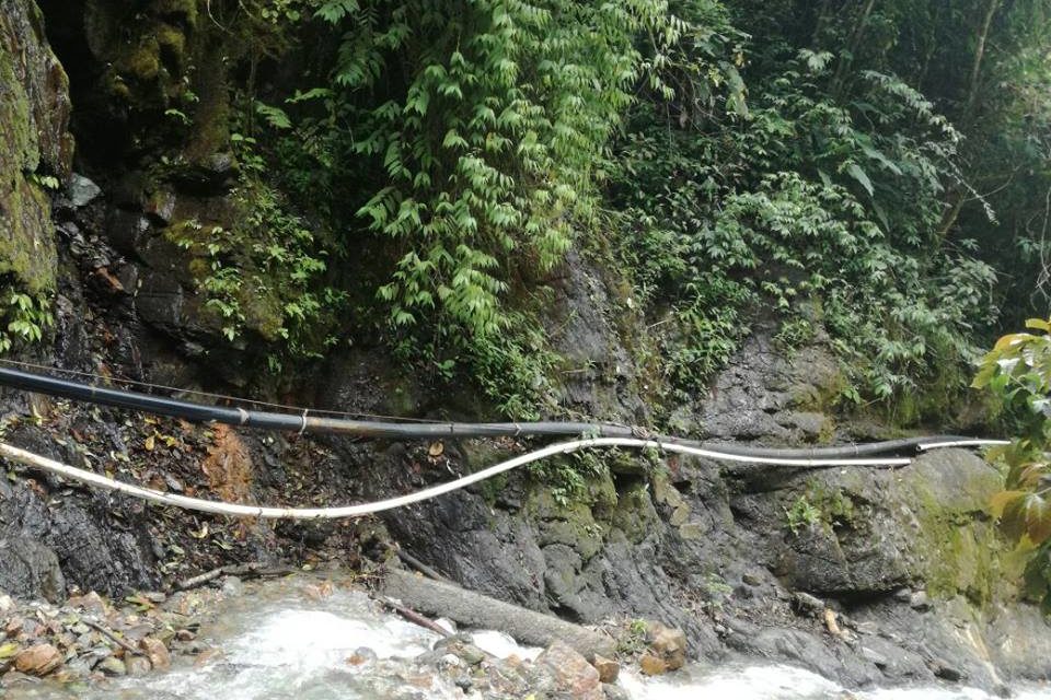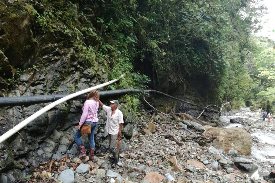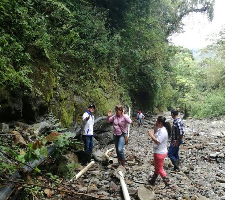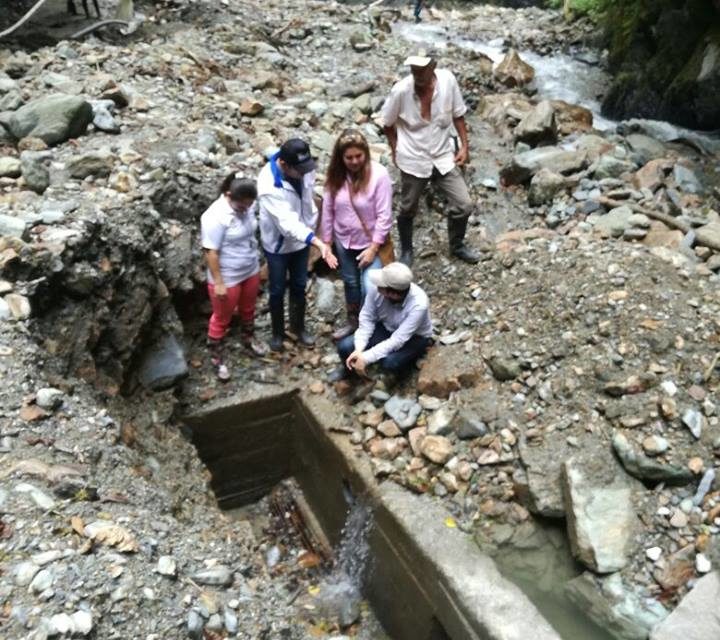 Empresas Públicas de Cundinamarca S.A. E.S.P. (EPC) hace entrega de la Obra de rehabilitación de la bocatoma de fondo con 200 metros de tubería de 3 pulgadas en el municipio de Quetame, beneficiando a más de 2500 personas con el consumo de agua potable. A esta entrega asisten Jefe de Planeacion, Jefe de Servicios Públicos del municipio y Profesionales de Apoyo de EPC.