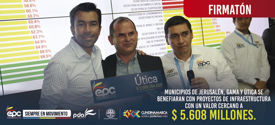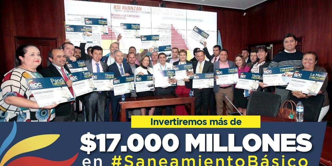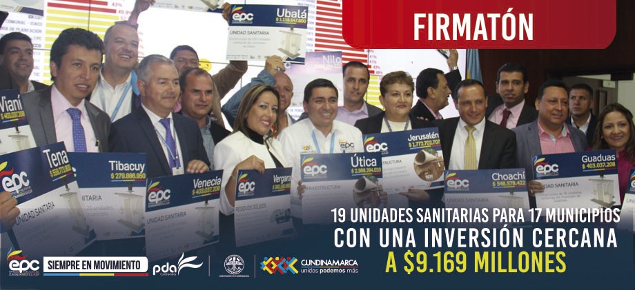 En el salón de protocolo de la gobernación de Cundinamarca, el gobernador de Cundinamarca Jorge Emilio Rey Ángel y el gerente general de Empresas Públicas de Cundinamarca A.S ESP (EPC) Andrés Díaz, realizaron la suscripción de 28 convenios para proyectos de Saneamiento Básico, acuedutos, alcantarillados y Plantas de Tratamiento de Aguas Residuales PTAR, con una inversión cercana a los $17.234 millones en 26 municipios.