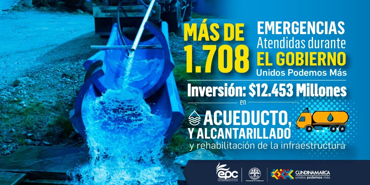 “Son cerca de 12.453 millones de pesos los que ha invertido este gobierno en materia de atención de emergencias de agua potable y saneamiento básico que a través de carrotanque, equipo succión presión y obras de infraestructura, hemos atendido a 107 municipios de los 112 que hacen parte del Plan departamental de Aguas. Adicional a ello se hizo la adquisición del equipo succión presión por 1.600 millones de pesos, para disponer de dos equipos que puedan a tender cualquier emergencia en el departamento”. Puntualizó Andres Díaz, Gerente general de Empresas Públicas de Cundinamarca.