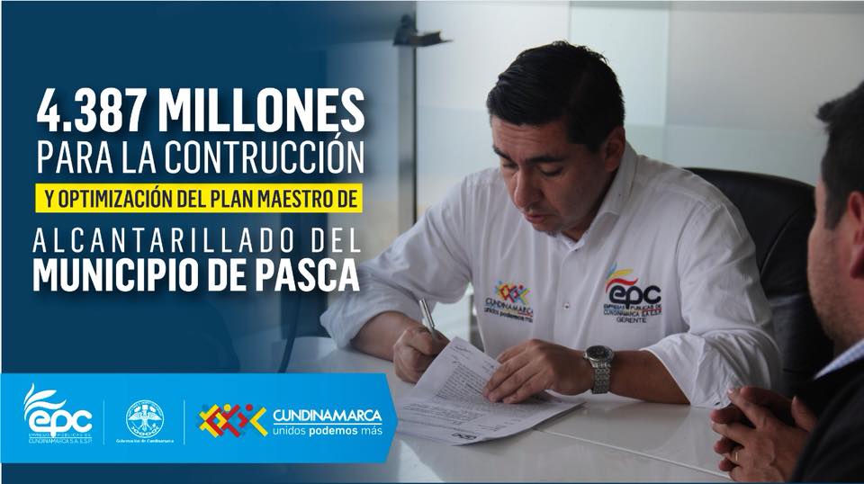 El convenio fue hecho entre el Gerente general de Empresas Públicas de Cundinamarca S.A. ESP Andres Ernesto Diaz Hernandez y el Alcalde del municipio de Pasca, Carlos Gilberto Muñoz Rodríguez; por un valor de 4.387 millones.