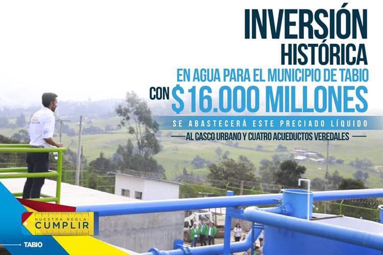 La obra, esperamos que sea inaugurada formalmente en el mes de junio, es una de las más grandes del departamento en su género. Con una nueva fuente hídrica que permite abastecer hasta con 40 litros por segundo el casco urbano y cuatro acueductos veredales, constituye una gran noticia para Tabio, porque los municipios sin agua no se pueden desarrollar y no tienen progreso ni alternativas de competitividad.
